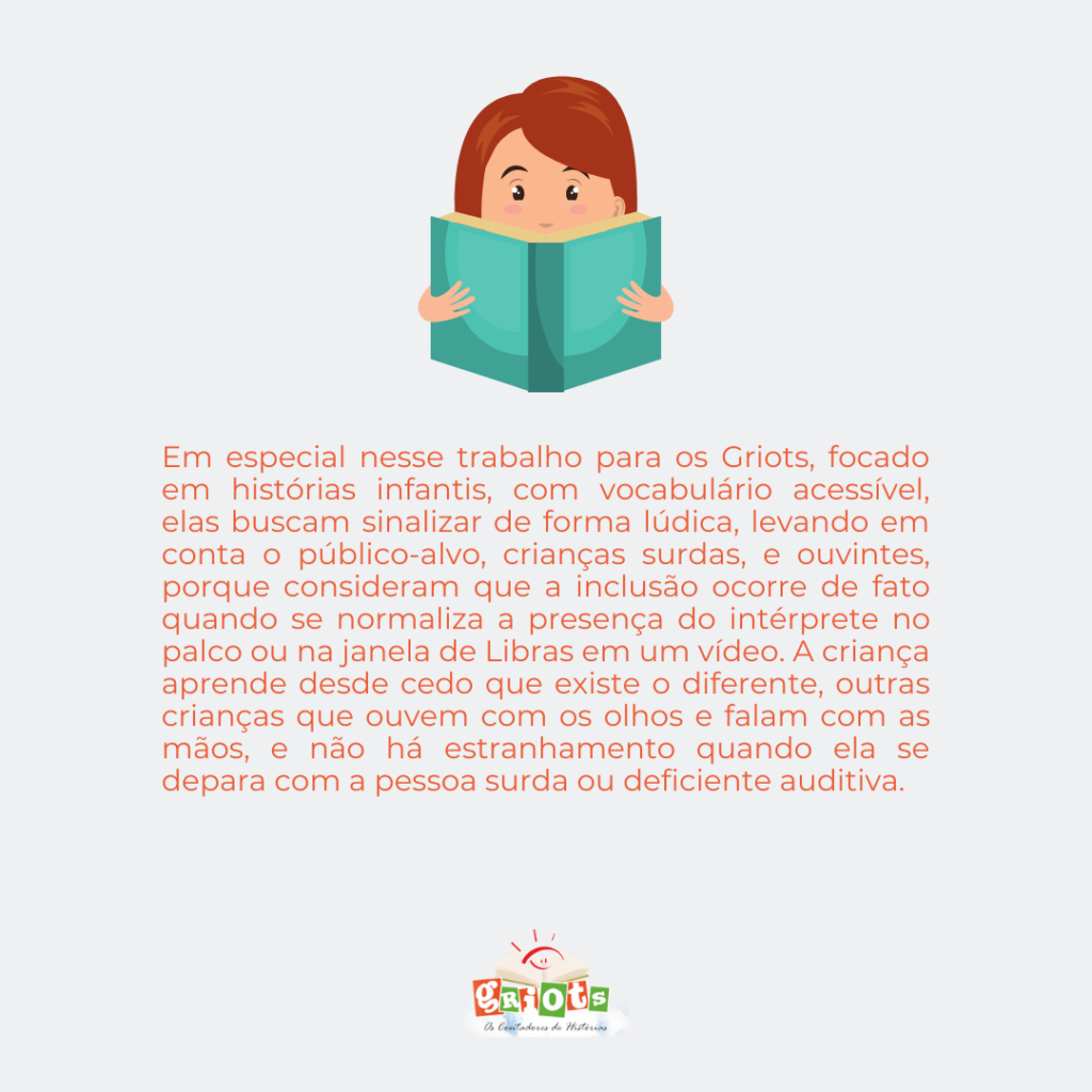 A Associação Griots – Os Contadores de Histórias conseguiu dar um importante passo e nossos vídeos de histórias agora já contam com a tradução em libras. Preparamos um conteúdo especial para explicar como funciona o processo de trabalho das intérpretes que colaboram conosco.